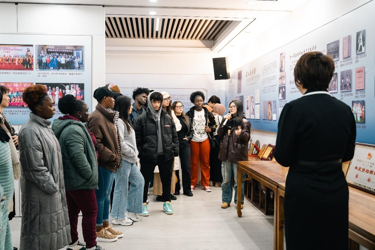 在闽剧展示厅,留学生们通过介绍了解中国传统戏曲的基本知识、闽剧的历史和剧院发展。在剧场内,留学生们观看多元性沉浸式闽剧表演《“福”见儒林》,该剧以闽剧始祖曹学佺与400多年后一名年轻的闽剧演员跨越时空的邂逅为线索,以颠覆传统的沉浸式演出方法,给予观赏者身临其境的视觉体验。在近两个小时的活动中,留学生们感受到闽剧古老的风韵与浓厚的时代气息,感受到泱泱五千年中华文化的博大精深。