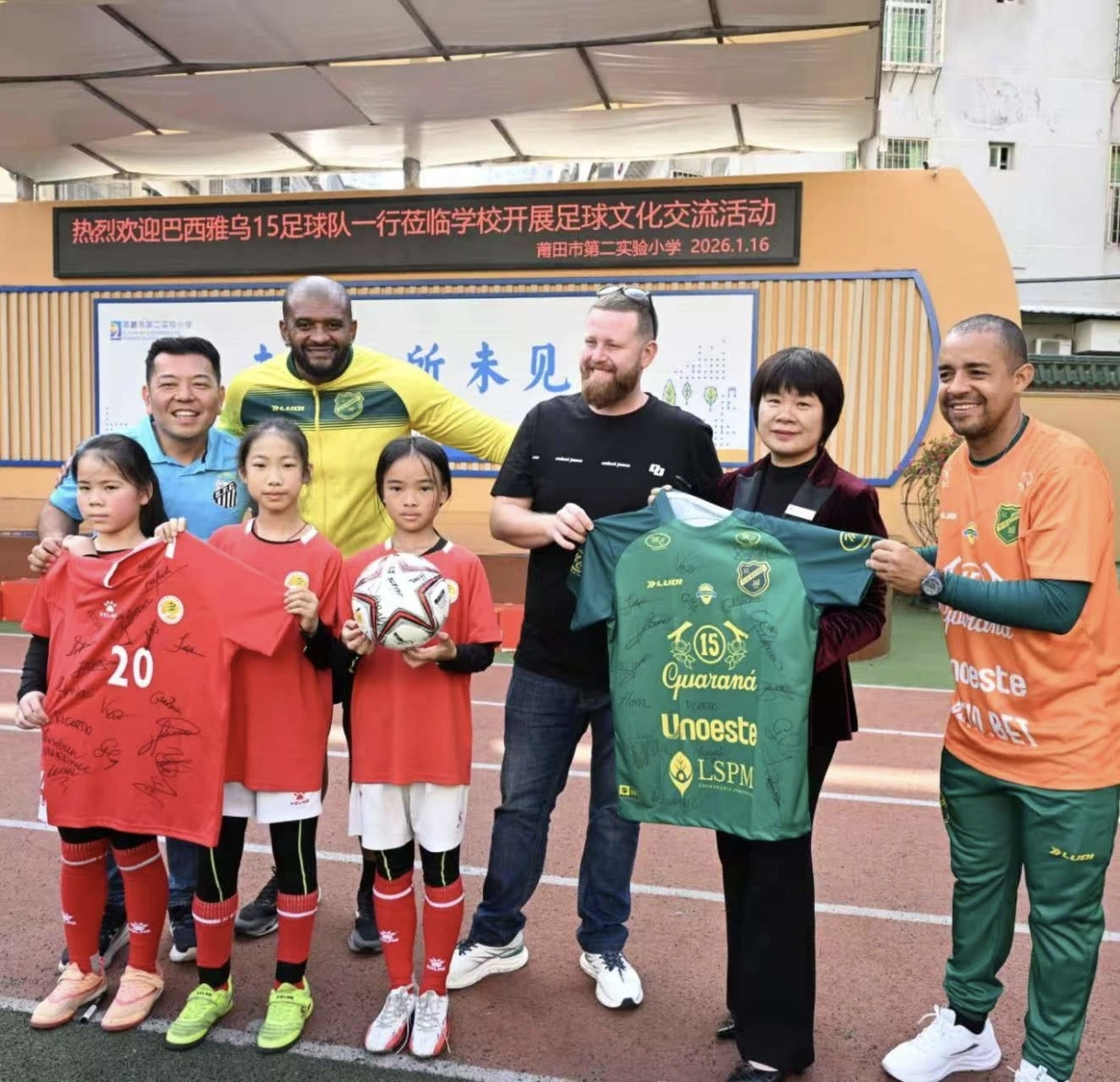 值此2026“中巴文化年”启幕之际,1月13日至20日,来自巴西圣保罗州的雅乌15足球队一行23人应邀到访福建莆田市,参加宝胜之夜·莆超邀请赛(中国莆田VS巴西雅乌),并开展丰富多彩的体育交流和文化互动,以球为媒、以赛传情,为中巴文化年开端营造良好氛围。